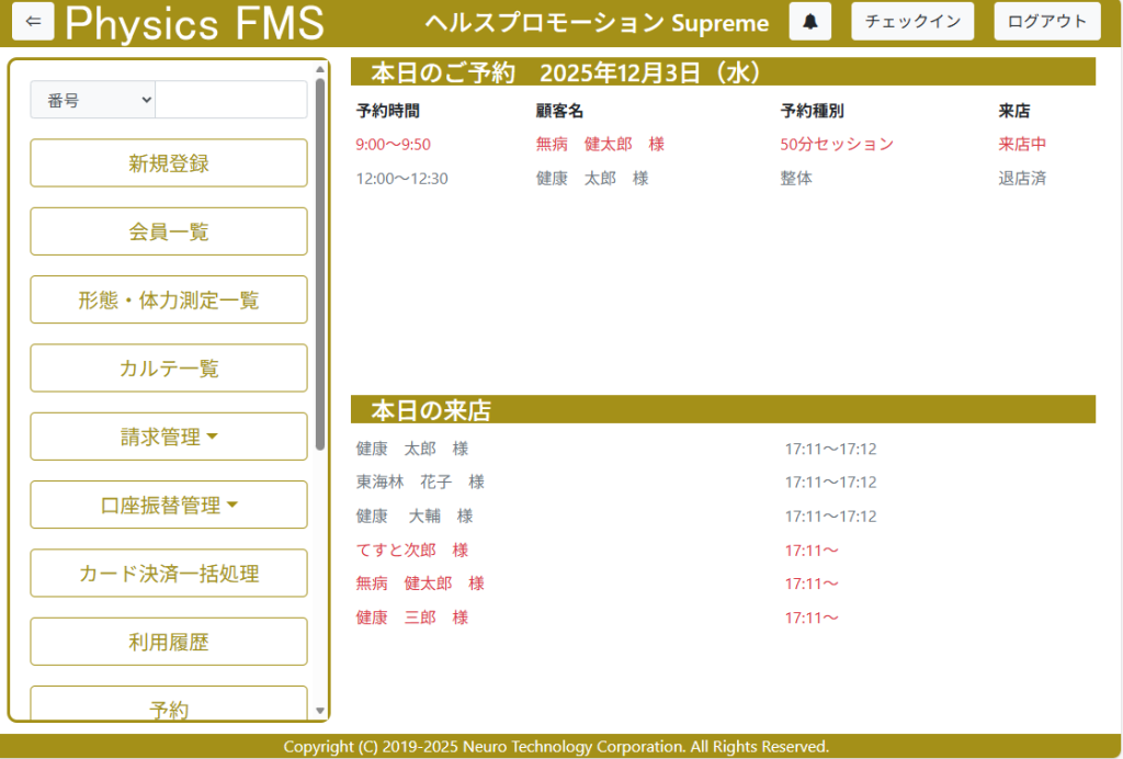 フィットネスジム 運営に必要な機能パッケージにしました。