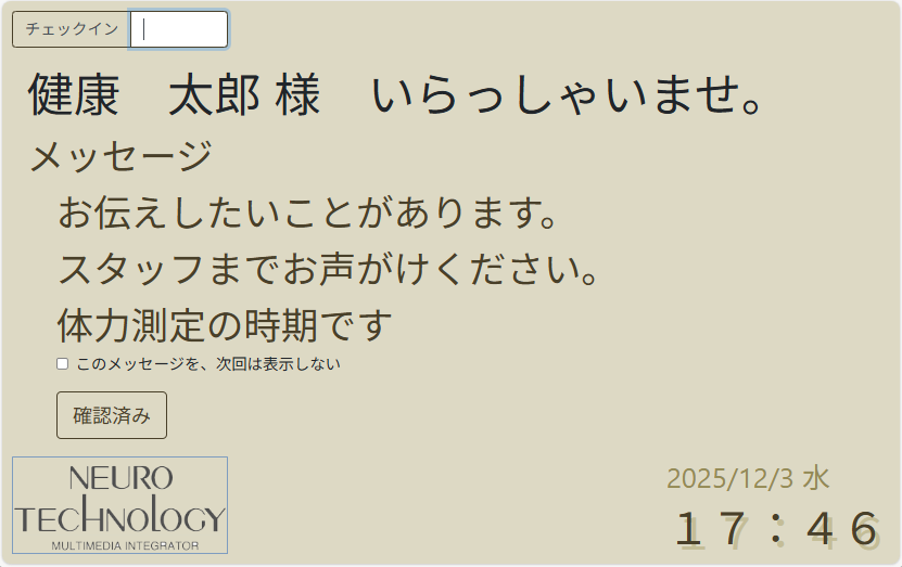 スタッフ操作によるチェックインも可能です