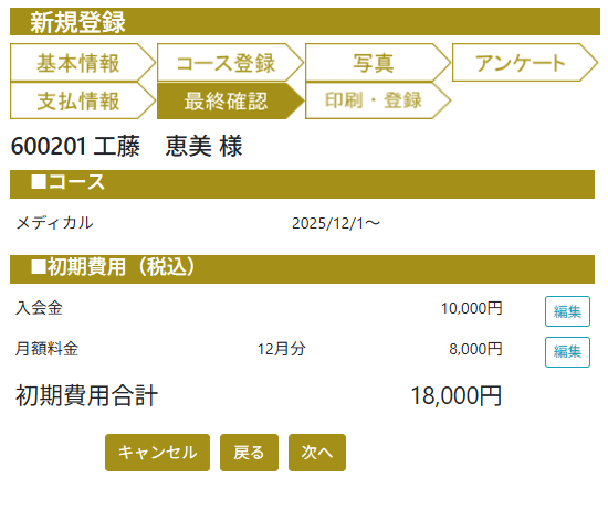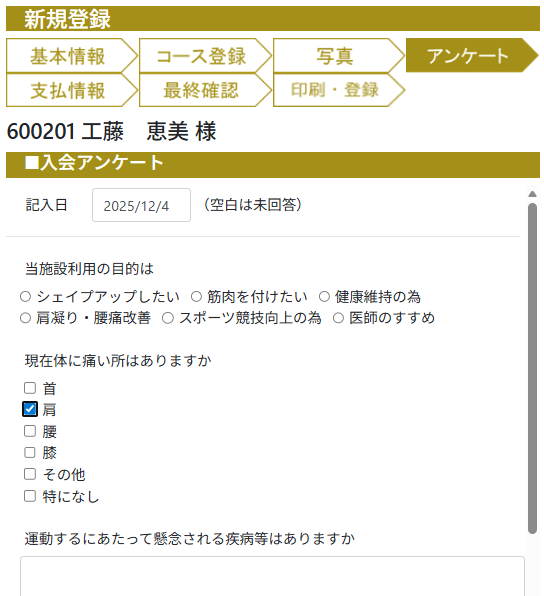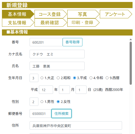 新規登録画面は、初めてのスタッフでも分かりやすく、画面に従って入力するだけで登録が完了します。