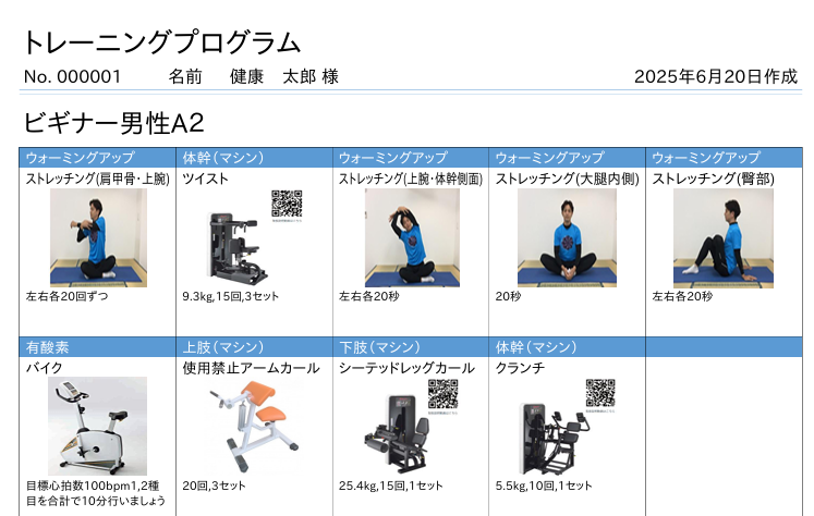 簡単なトレーニングメニュー(カルテ)の作成